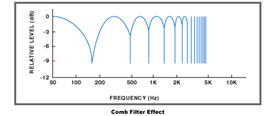 The comb filter effect can cause problems during recording as the signals reflect off surfaces.