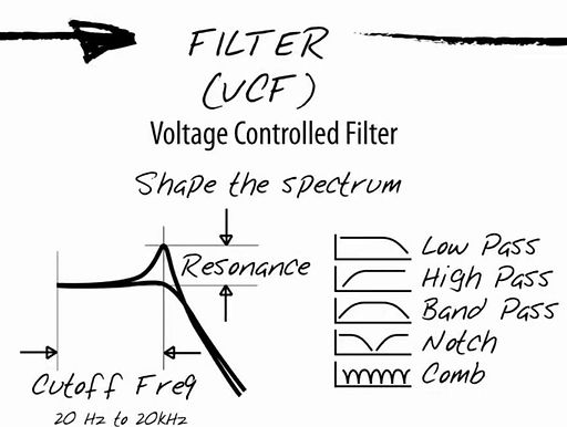 Although there are an infinite number of possible response curves that a filter can have, the most common types used in synths are: